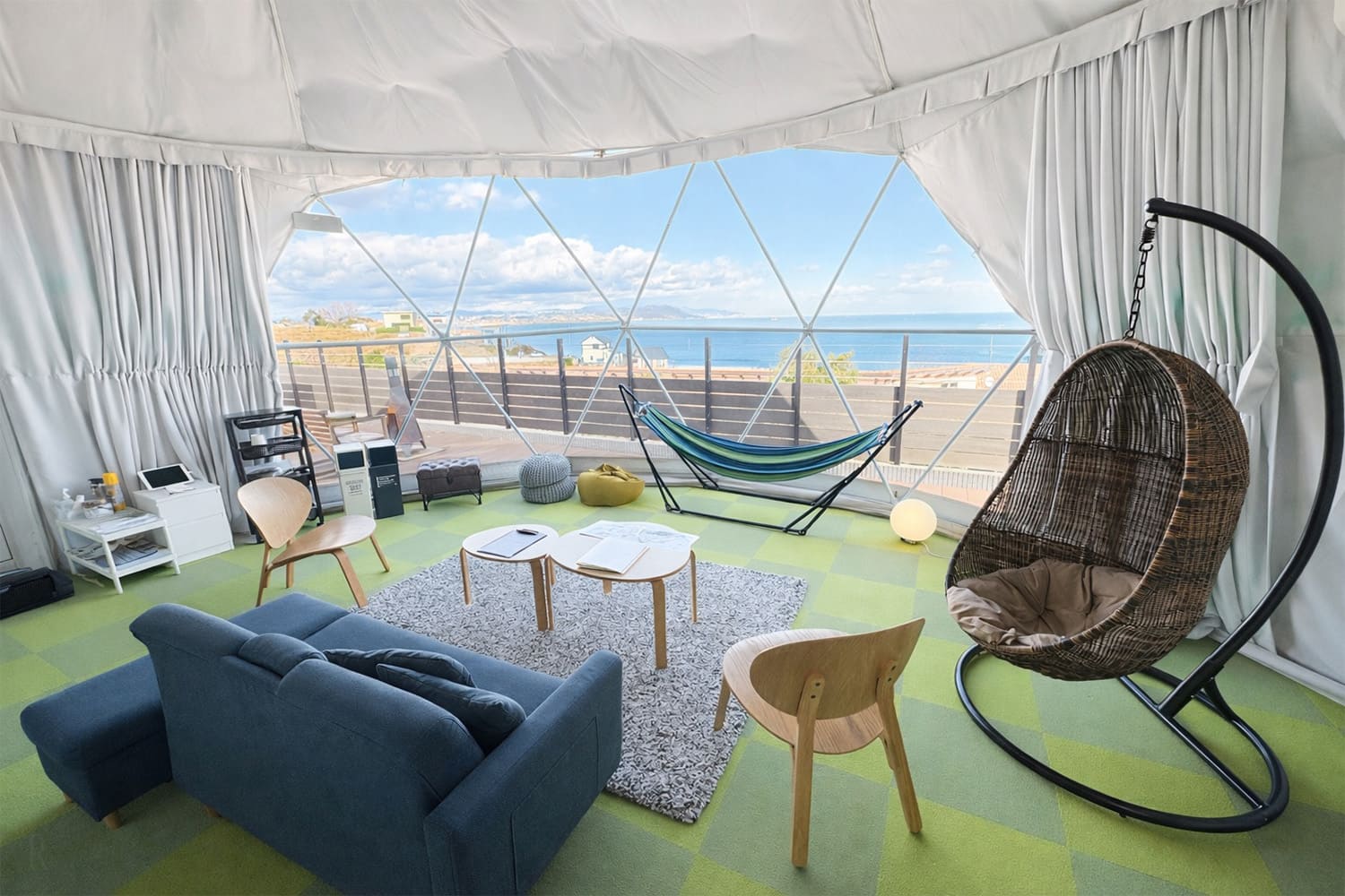 温暖な気候、青い海と空に囲まれた淡路島で自由気ままなリゾートグランピングをお楽しみください。