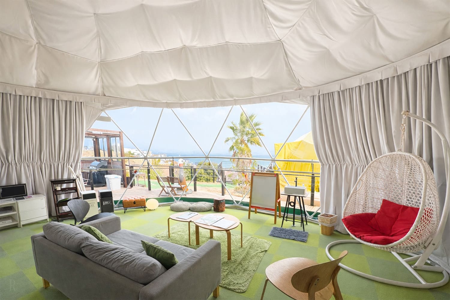 客室面積は78㎡。国内最大級の大きさを誇る直径10mの大型ドームテント。
